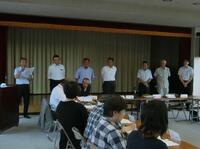 県庁では、係の方の説明を聞きながら議場や庁舎内を見学しました。展望階では、昼食を食べました。