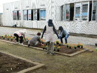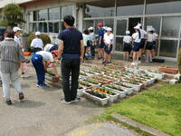 子供たち同士話し合って「西田井小6年生の地上絵」が完成しました。