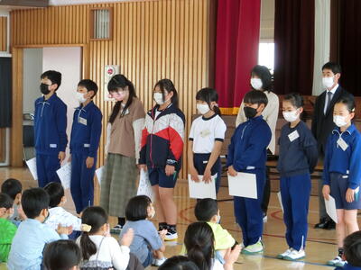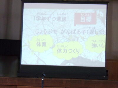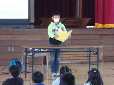 児童代表で6年生が今年の目標を発表してくれました。算数を頑張ること、最高学年として下級生の手本となる行動をとること、部活動(野球)を県大会目指して頑張ることを目標に立て、1日1日を大切にして過ごしたいと発表してくれました。