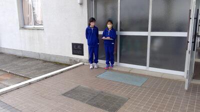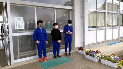 昇降口の外では、6年生のあいさつ当番が大きな声であいさつをしてくれました。
