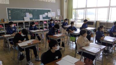 難しい問題も出ていたようですが、時間いっぱい問題に取り組んでいました。テストの内容や結果を分析し、これからの学習に生かしていきたいと考えています。