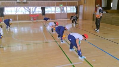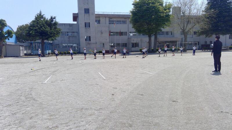 写真は5年生がボールを投げる練習をしているところです。投げる構えから投げ終えるまでの動きを繰り返し確認していました。