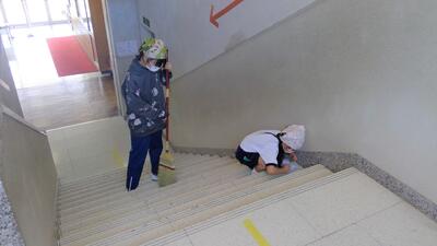 清掃のときは、上級生が仕事の仕方を教えたり手伝ってあげたりする姿が見られました。