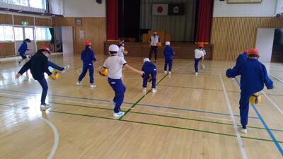 児童の体力向上に向けての県の取り組みで、体育専門の飯島先生(エキスパートティーチャー)が来校し、4年生と5年生の体育の授業をしていただきました。ボールを使った様々な動きを体験しました。最初はなかなかうまくいかない運動も、先生からコツを教えていただき、どんどん上達していきました。