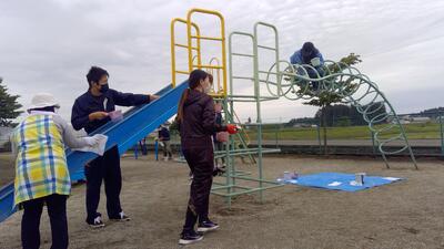 早朝から、多くの保護者の皆様の御協力をいただき、PTA奉仕作業を実施しました。コロナ禍で昨年度、一昨年度は実施できなかったので、3年ぶりの奉仕作業です。学校農園のサツマイモ植えの準備、側溝の清掃、トイレ清掃、遊具のペンキぬりを行っていただきました。普段、教員や児童ではなかなかできないところが整備できました。大変お世話になりました。