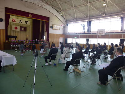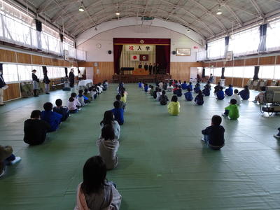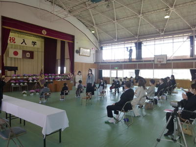新型コロナウイルス感染拡大予防のため、新入生と保護者、職員だけの入学式となったことは大変残念でありますが、呼名の時、元気な返事が響き、これから、1年生から6年生94名揃って学校生活がスタートできることへの喜びを感じました。