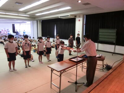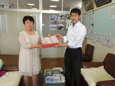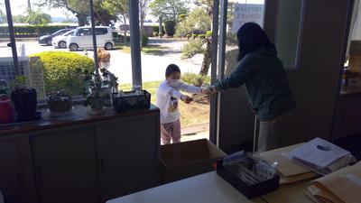 6月2日午後、八社五社踊り保存会代表の高松様が学校にいらっしゃいました。保存会の皆様が協力して子供用のマスクを作ってくださったそうです。皆さんが一生懸命作ってくださったので、思ったより早く数がまとまったとおっしゃっていました。児童に配ってほしいとのことでしたので、本日(6月3日)配布させていただきました。。保存会の皆様、ありがとうございました。