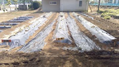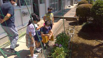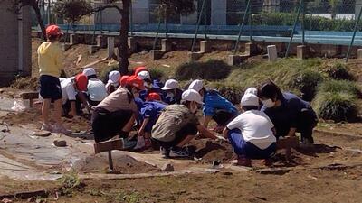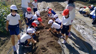 11日(月)にサツマイモの苗が届き、各担任が苗植えを行いました。