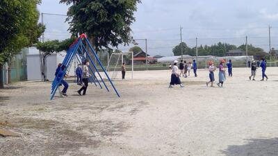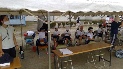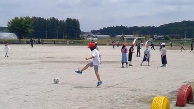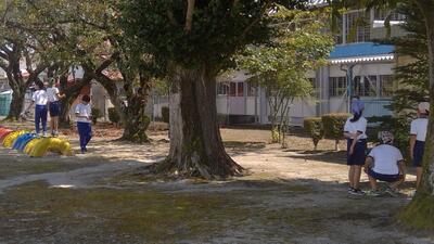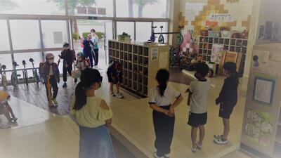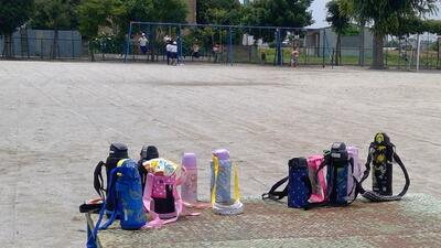 児童にとって楽しみなロング昼休みの日です。外で遊ぶ児童はいつもより少なめですが、厚さ対策に水筒を用意し、日陰も活用しながら元気に遊ぶ姿がありました。