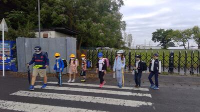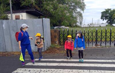 今日も、「おはようございます」の元気なあいさつの声を聞くことができました。班長さんは1年生の様子を確認しながら登校してきています。