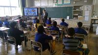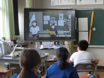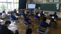 6月11日(木)業間に、JRC登録式を行いました。今回も、学級委員任命式と同じように、登録式会場と教室をネットワークでつなぎ、電子黒板に映して、教室から参加してもらいました。