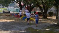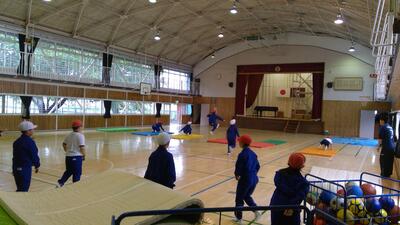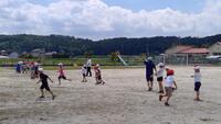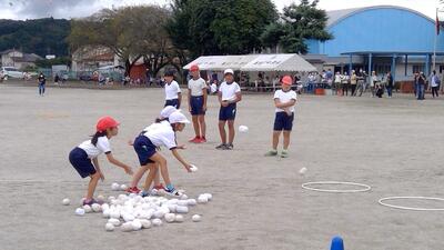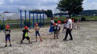 「親子で運動会の紅白対抗」「親チーム対子チーム」「男子親子対女子親子」「王様ドッジボール」を行いました。お父さん、お母さんは受けるのも投げるのも上手で、子供たちはびっくりしていました。とても楽しい時間となりました。