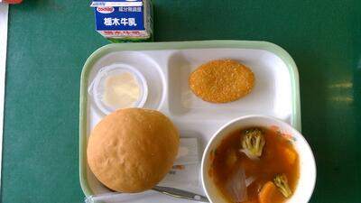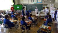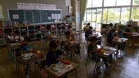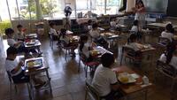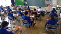給食の様子です。コロナウイルス感染予防のため、どの学年も前を向いて座り、静かに食事をしています。