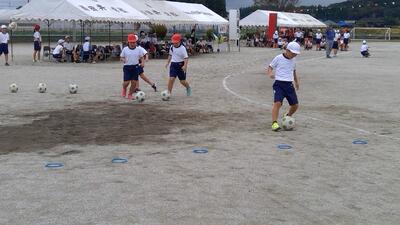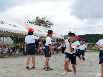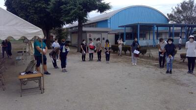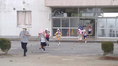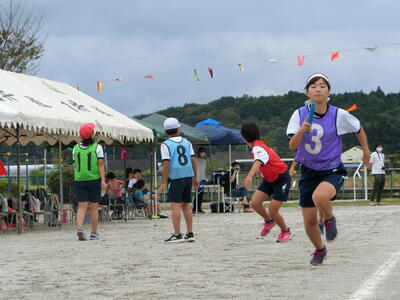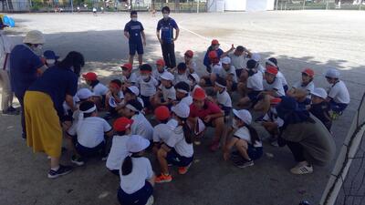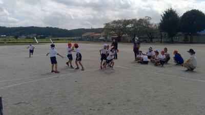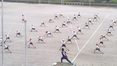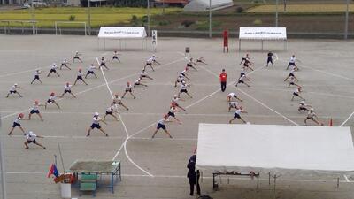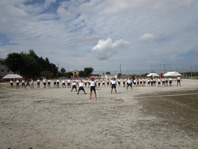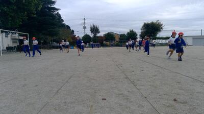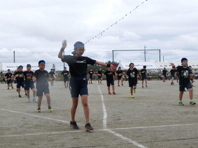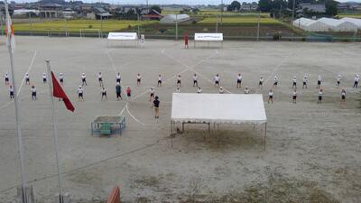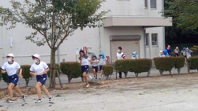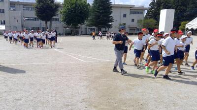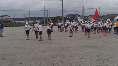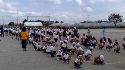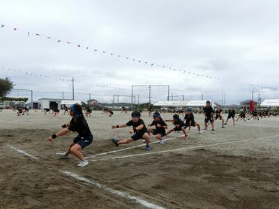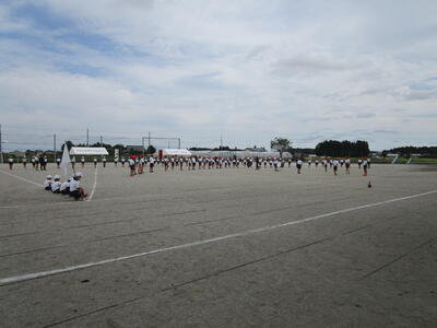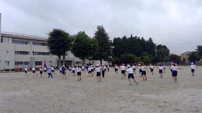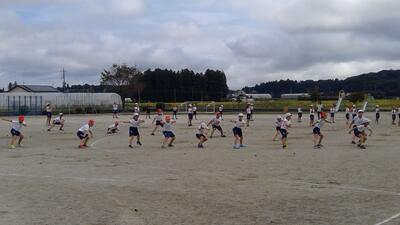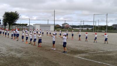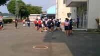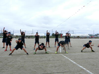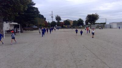 走った後は、各学年で集まり、クールダウンして終了です。みんな元気に走っていました。