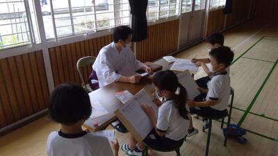 今日は、午前中4時間の授業で児童は下校し、午後、来年度入学する児童の健康診断を実施しました。