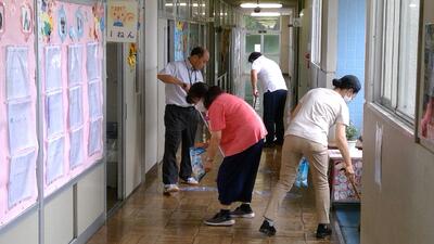 桜の花びらが舞う中、子どもたちが登校してきました。校舎には元気な声が響き、活気が戻ってきました。