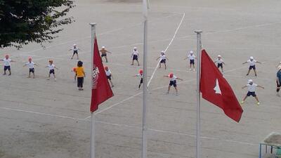 いよいよ運動会が明日に迫ってきました。各学年、最後の仕上げに余念がありません。(下学年の練習)