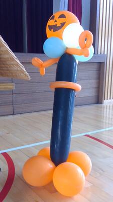 風船をねじったり結んだりするときに少しドキドキしながら作品作りに取り組みました。全員無時完成して、みんなで記念写真を撮りました。