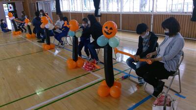 3・4校時親子レクレーションを実施しました。寺内真紀先生を講師に迎え、バルーンアートを楽しみました。