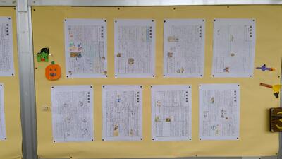 先週、遠足や修学旅行に行きました。そこで体験してきたことを各学年で振り返りを行っています。作文に書いたり、絵日記にしたり、新聞を作成したりしています。