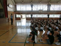 体育館では、児童が不審者に出会った時の対応の仕方を学びました。県内でも子供に対する不審者の案件が、昨年度450件ほどあったそうです。