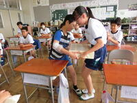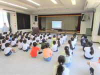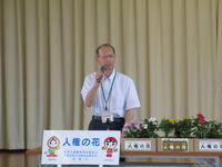 人権擁護委員の代表の方から、「人権の花」について「命を大切にする」「相手を思いやる」「助け合う」ことの大切さに触れながら、お話をいただきました。子供たちが静かに、真剣なまなざしでお話を聞くことができていたので、人権擁護委員の方からお褒めの言葉もいただきました。