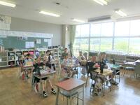 朝の学習の時間に、読み聞かせボランティアの方に来ていただきました。今日は、全学年でお話を聞くことができました。子供たちも暑さも忘れ、集中して聞いていました。