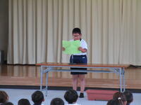 朝会では、6月15日(日)が栃木県民の日でしたので、「栃木県クイズ」を10問出題しました。クイズに答えながら栃木県のことに興味を持つことが目標です。県の大きさや人口、方言などについてクイズにしました。詳しくはお子さんに聞いてみてください。