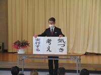 終業式の校長の話では、2学期を写真で振り返りました。日本の年末年始の風習について触れて、「一年の計は元旦にあり」の言葉から、子供たちに「新年の目標」を考えることをお願いしました。