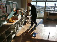 冬休み中のほこりがあったり、雑草が伸びてきたりしていました。