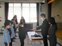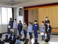 表彰では、たくさんの児童が名前を呼ばれ、代表児童が賞状を受け取りました。