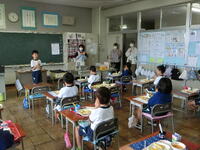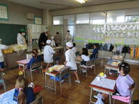 第二給食センターから2名の職員の方が、給食の時間の様子を見に来てくださいました。