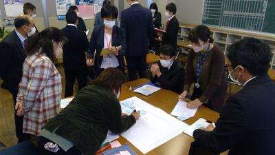 公開授業終了後、2グループに分かれて研究協議を行い、ICT機器活用の仕方や学習への効果について話し合いました。