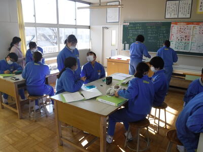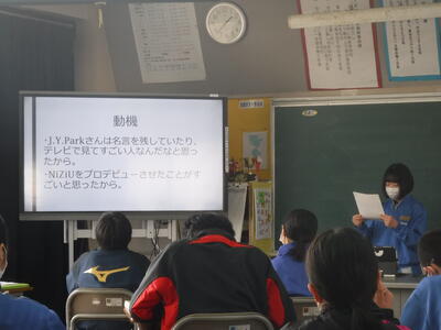 3年生が、大内地区の出身小学校に出向き、中学校生活について説明会を行いました。