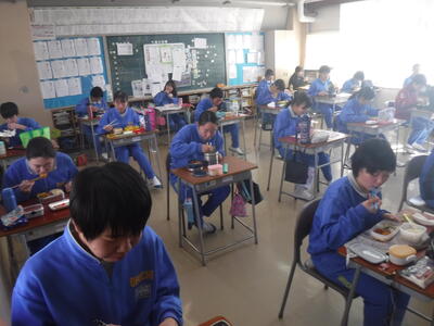お弁当の日は、お家の人が作ったお弁当はやはりおいしく、ものすごいスピードで完食していました家庭科・調理