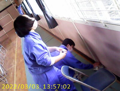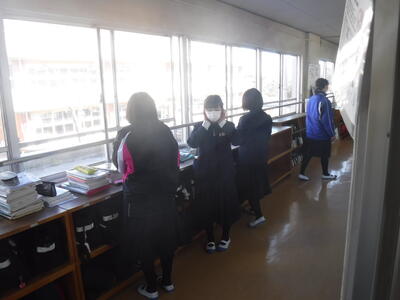 2年生は、卒業式場準備があり、感謝の気持ちをこめて、隅々まで一生懸命行っていました花丸