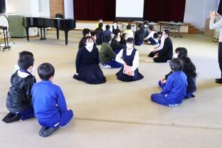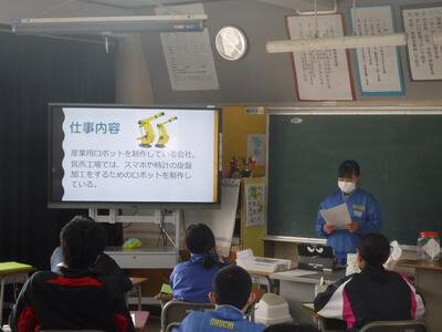 母校の小学校に懐かしさを感じながら、6年生に説明していました。