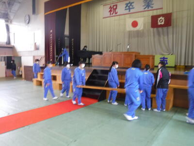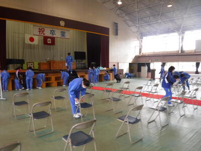 ☆卒業式会場準備(各場所のリーダーを中心に、生徒主体で活動できました)