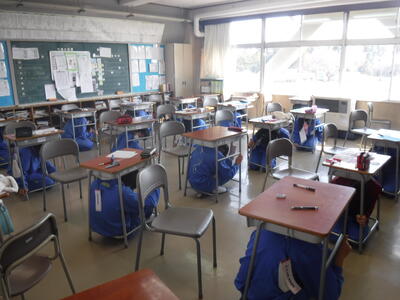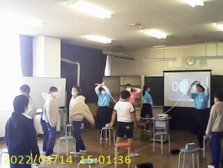シェイクアウト訓練 地震(3.11から10年、この日は黙祷も学校全体で行いました。)