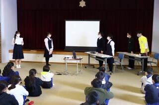 1年間の行事予定や部活動、委員会についてスライドショーで説明したり、〇✖クイズや劇などをしたりと各学校ごとに工夫して説明していました。