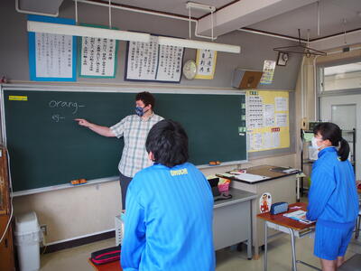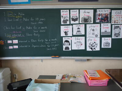 1組の英語の授業では英単語しりとりをしました。