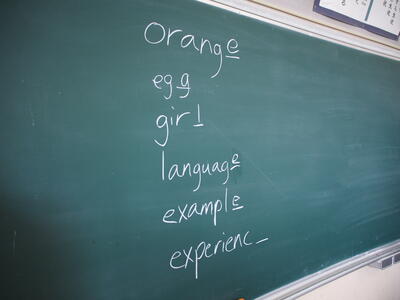 生徒の皆さんは知恵をしぼって、eで終わる単語で攻めています!