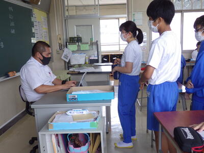 コロナウイルス対策についてでは物を使用してわかりやすく説明し、生徒たちは予防の大切さを再認識することができました。