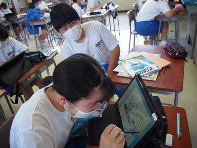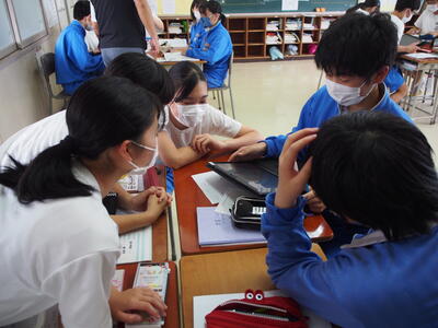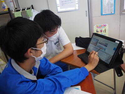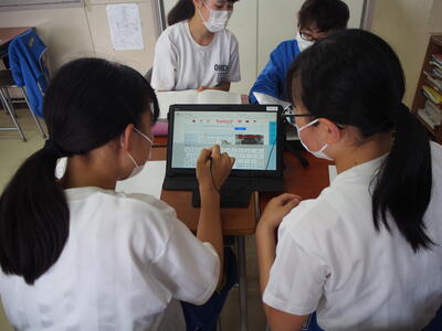 生徒用タブレットを使用して、高等学校のホームページなどから調べたりすることができました。