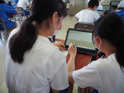 本日の英語の授業では生徒用タブレットを使用しました。