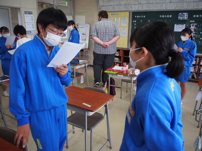 生徒会長、学級委員が先頭に立ってスムーズに進行することができました。