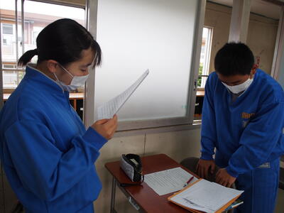 生徒会役員と委員長は10日に行われる生徒総会のリハーサルに励んでいます。