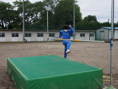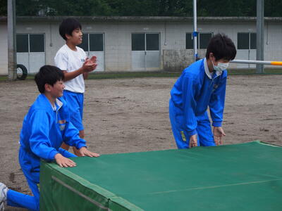 体育の授業では、高跳び、幅跳びに分かれて授業を行いました。