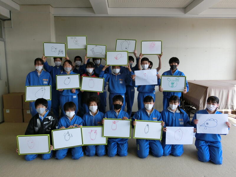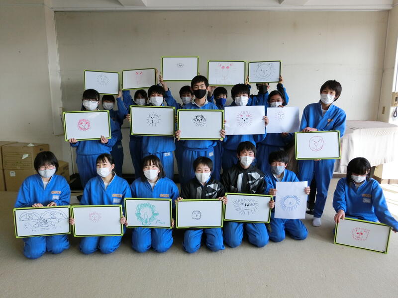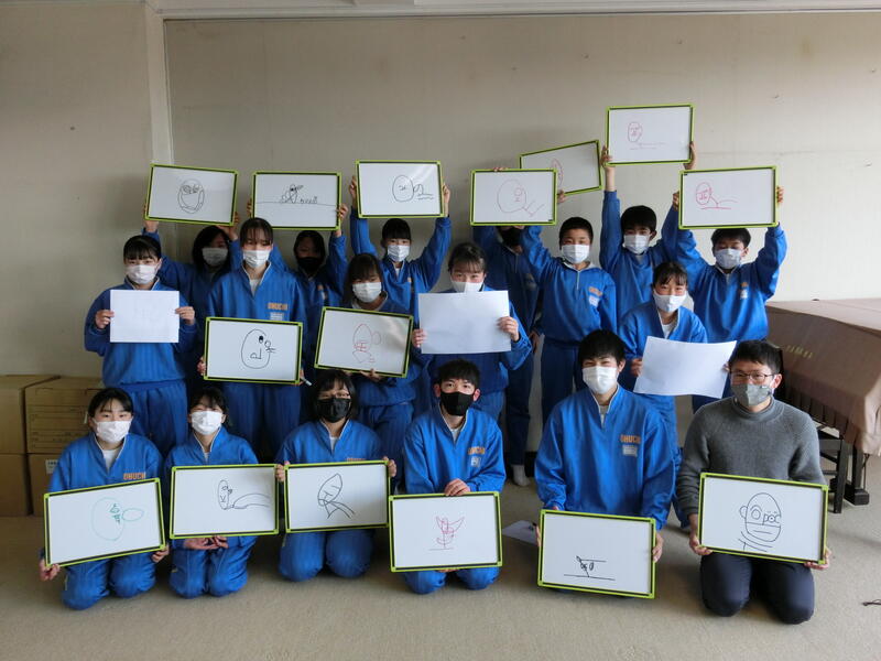 説明した人が、他の人が描いた絵を持って写真を撮りました視聴覚