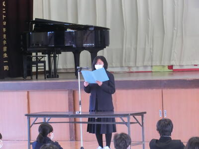 この学年の生徒達は明るく、元気で、一生懸命で、仲が良くて、しっかり挨拶ができて…本当にすばらしい学年でした。きっとこの子達なら、高校でもしっかりやっていけると信じています。中学校で学んだことを忘れずに、様々なことに挑戦して、更にレベルアップした子供たちに会えるのを楽しみにしています。